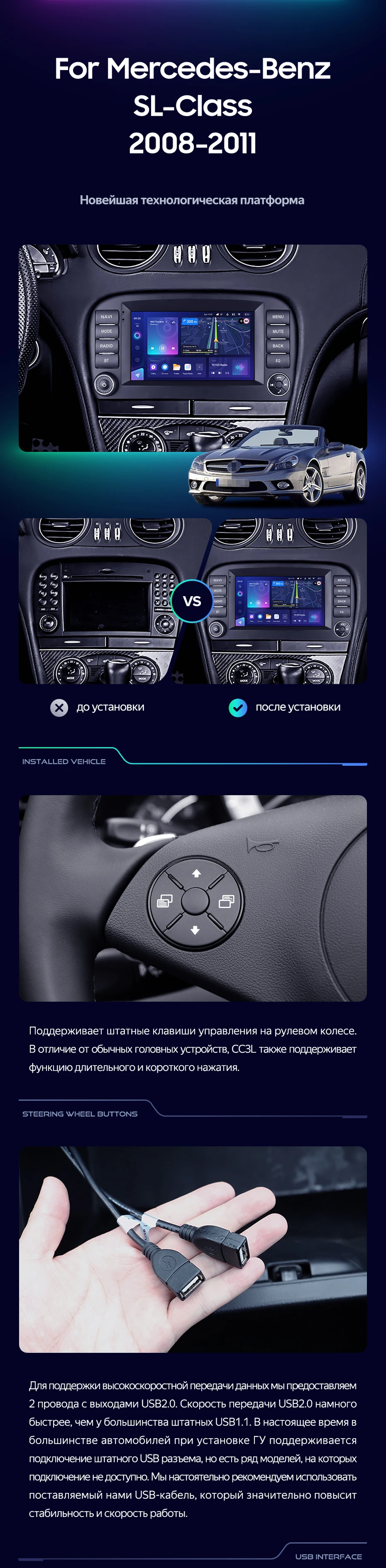 Переходная рамка Mercedes-Benz SL-Class R230 (2008-2011) (7") - купить всего за 7 000 руб. в интернет-магазине в Кемерове Teyes.com.ru. ✓ Самый лучший выбор мультимедиа ✓ Лучшая замена штатному ГУ ✓ Тел. +7 (800) 775-31-74