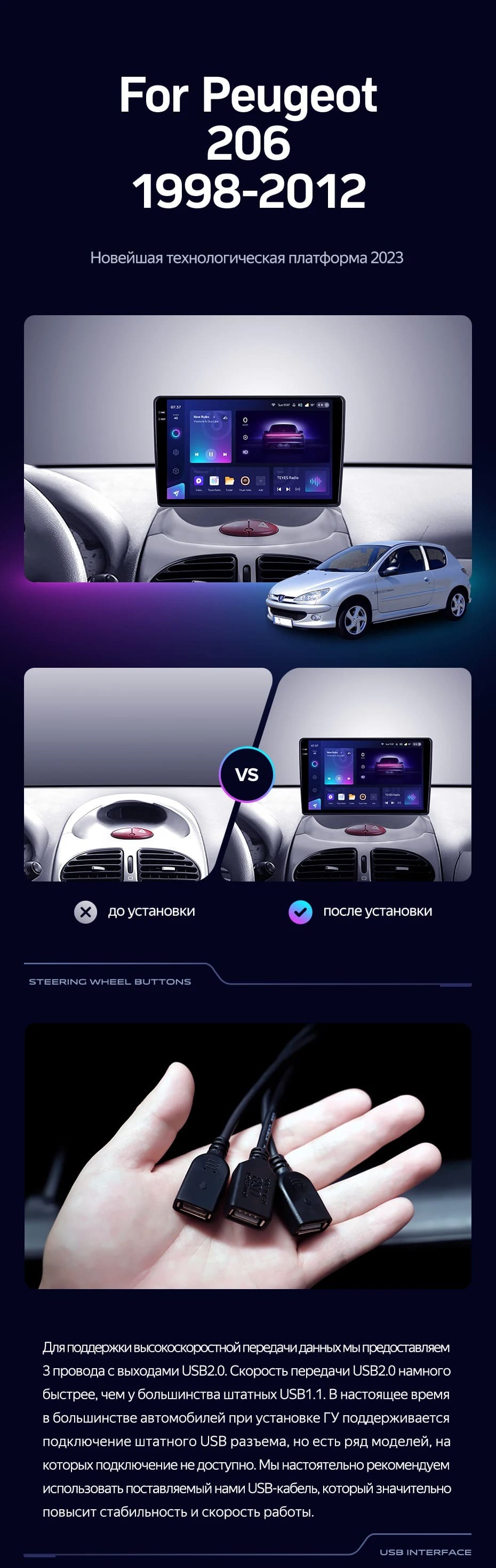 Переходная рамка Peugeot 206 T13 T16 T12 (1998-2012) (9") - купить всего за 5 600 руб. в интернет-магазине в Кемерове Teyes.com.ru. ✓ Самый лучший выбор мультимедиа ✓ Лучшая замена штатному ГУ ✓ Тел. +7 (800) 775-31-74