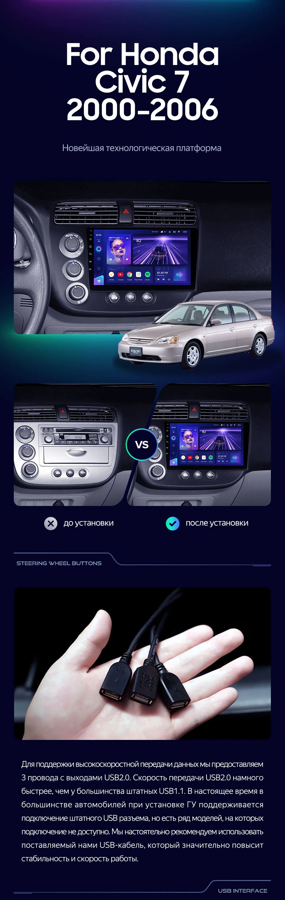 Штатная магнитола Teyes CC3 4/32 Honda Civic 7 (2000-2006) F1 - купить всего за 32 530 руб. в интернет-магазине в Кемерове Teyes.com.ru. ✓ Самый лучший выбор мультимедиа ✓ Лучшая замена штатному ГУ ✓ Тел. +7 (800) 775-31-74