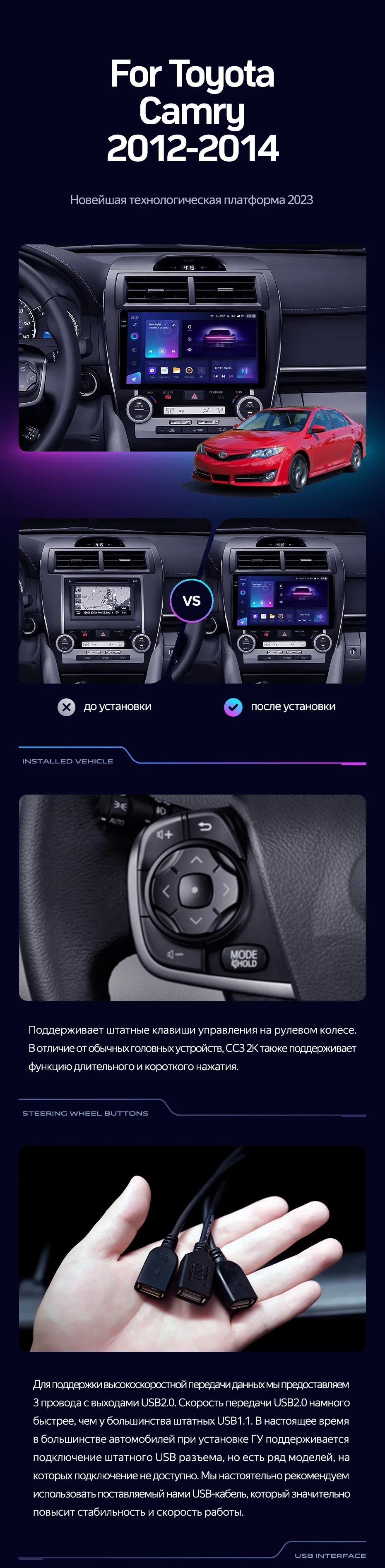 Штатная магнитола Teyes CC3L WiFi 2/32 Toyota Camry 7 XV 50 55 (2012-2014) Америка - купить всего за 17 100 руб. в интернет-магазине в Кемерове Teyes.com.ru. ✓ Самый лучший выбор мультимедиа ✓ Лучшая замена штатному ГУ ✓ Тел. +7 (800) 775-31-74