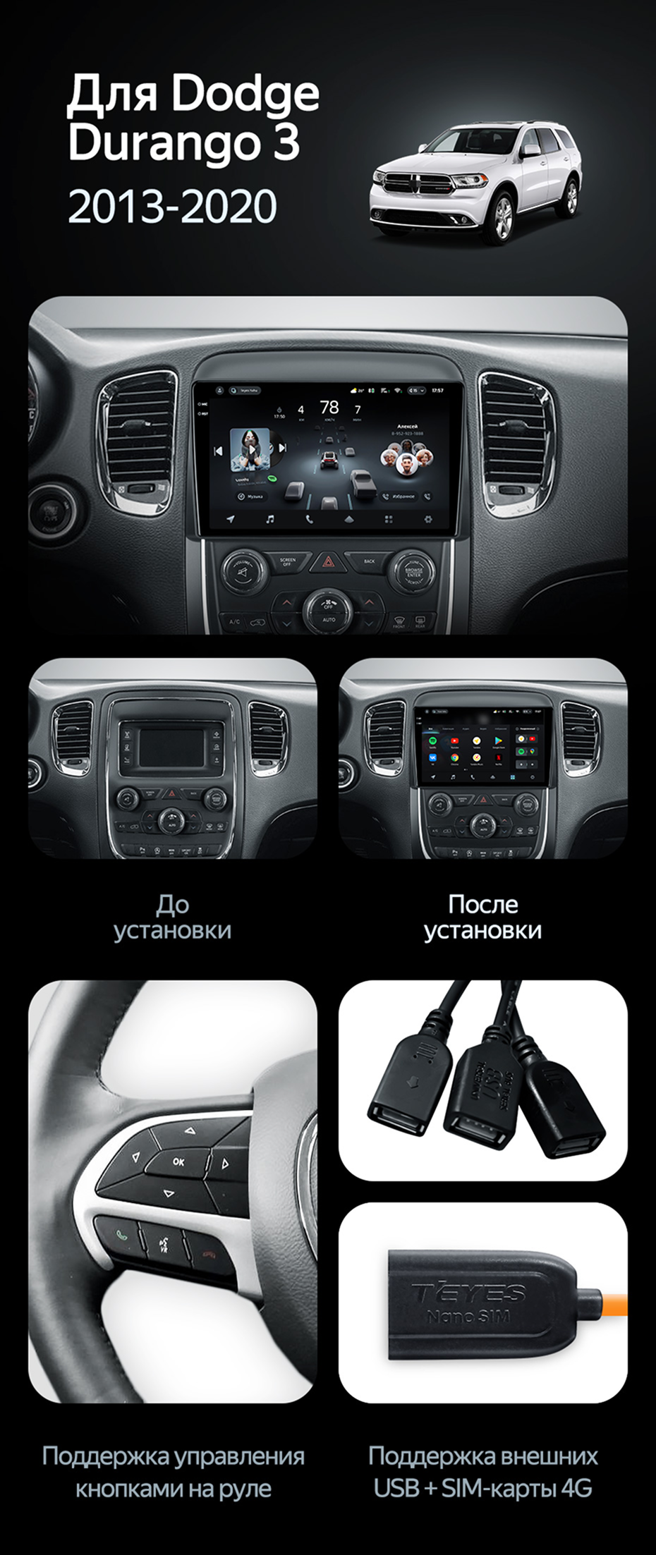 Штатная магнитола Teyes CC4 Pro 12/256 Dodge Durango 3 (2013-2020) - купить всего за 72 500 руб. в интернет-магазине в Кемерове Teyes.com.ru. ✓ Самый лучший выбор мультимедиа ✓ Лучшая замена штатному ГУ ✓ Тел. +7 (800) 775-31-74