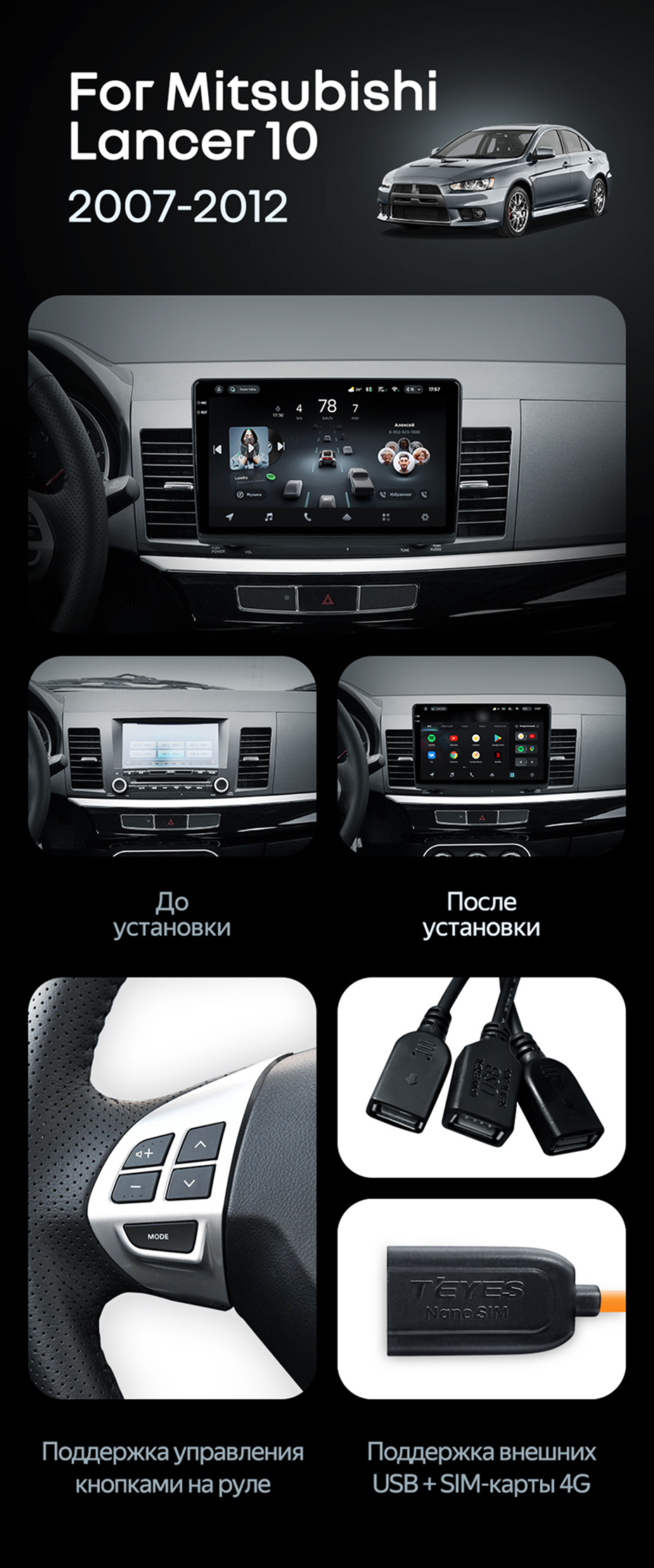 Штатная магнитола Teyes CC4 Pro 8/128 Mitsubishi Lancer 10 CY (2007-2012) Тип-B - купить всего за 60 550 руб. в интернет-магазине в Кемерове Teyes.com.ru. ✓ Самый лучший выбор мультимедиа ✓ Лучшая замена штатному ГУ ✓ Тел. +7 (800) 775-31-74