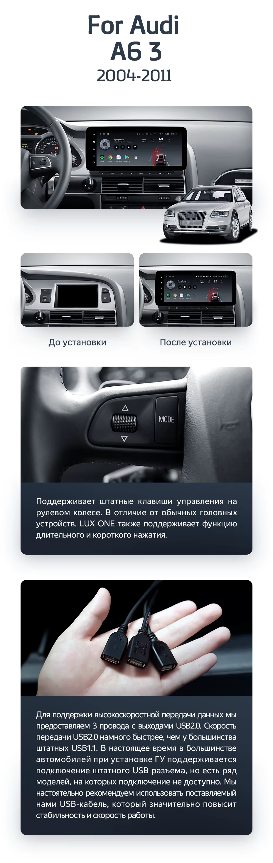 Штатная магнитола Teyes LUX ONE 4/64 Audi A6 3 C6 (2004-2011) - купить всего за 43 400 руб. в интернет-магазине в Кемерове Teyes.com.ru. ✓ Самый лучший выбор мультимедиа ✓ Лучшая замена штатному ГУ ✓ Тел. +7 (800) 775-31-74